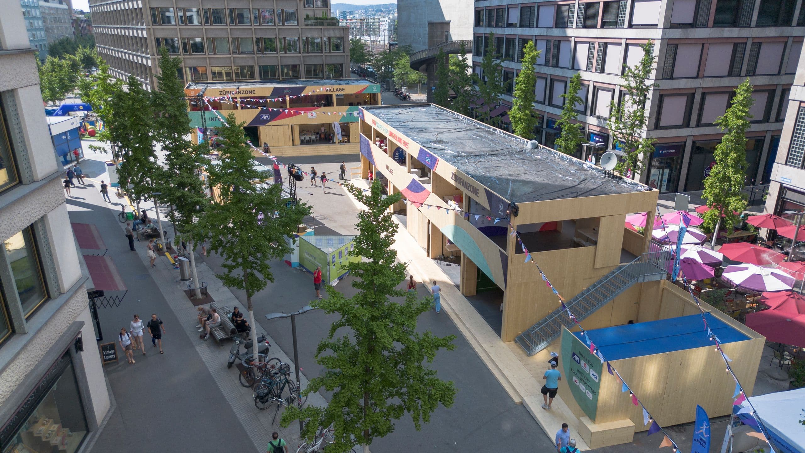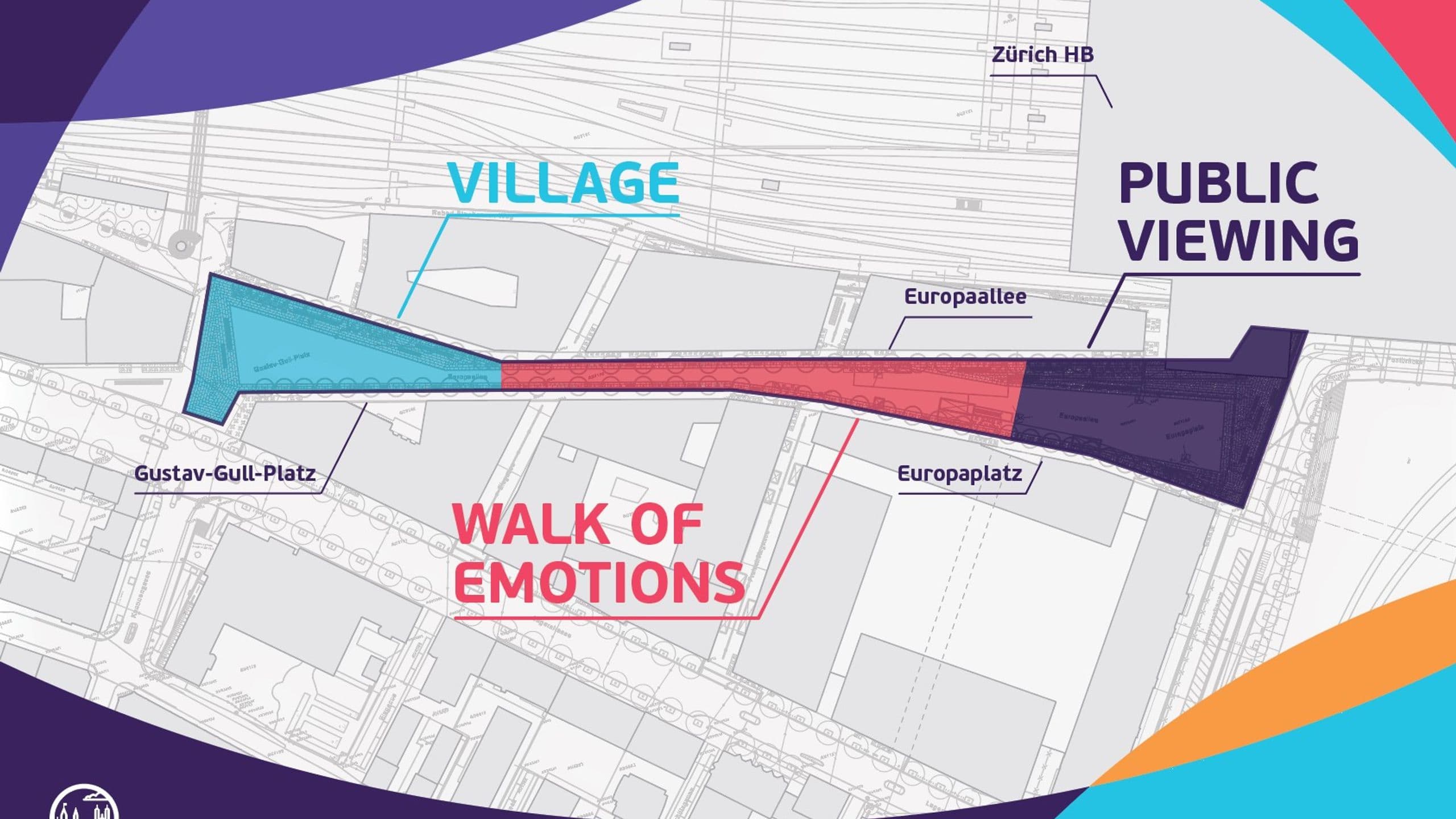 Während des Turniers ist die zentral gelegene «ZüriFanzone» in der Europaallee der Treffpunkt für Fussballbegeisterte, die Zürcher Bevölkerung und Gäste aus nah und fern.