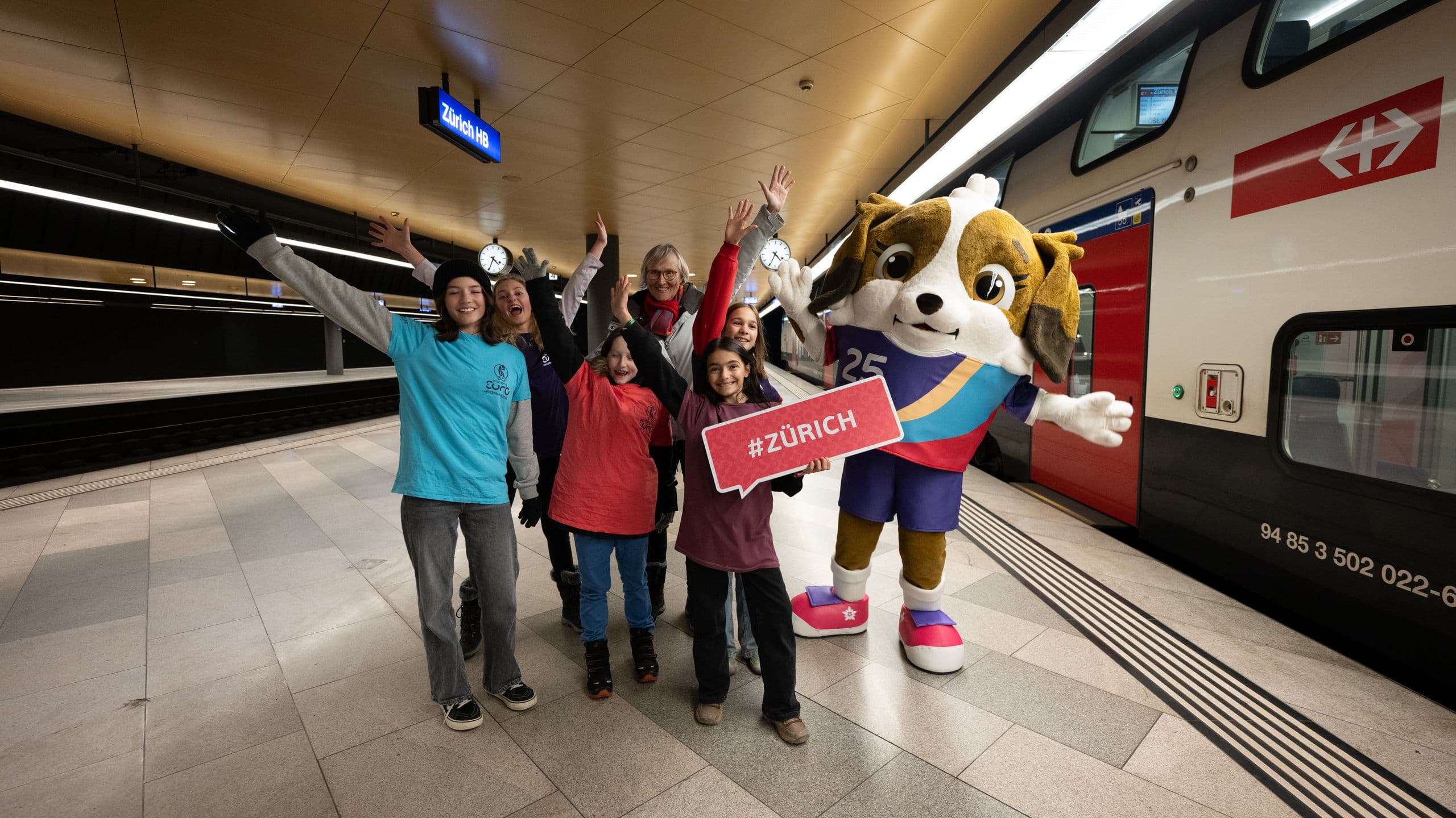 Maddli's journey began in Geneva, where she surprised children and travelers at Cornavin train station. She then traveled by train to Zurich, where she was warmly welcomed by participants in the new ZüriKick courses. At the Letzigrund Stadium, Maddli visited the ZüriMobil and met ambassador Fabienne Humm – an inspiring moment for everyone involved.